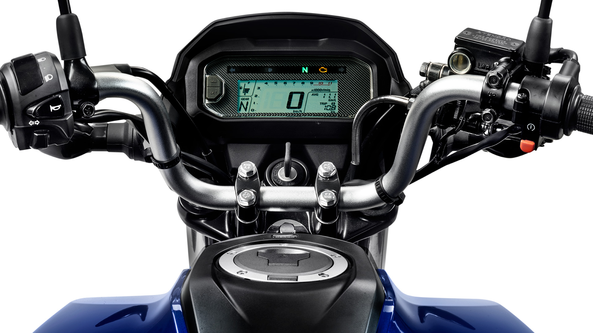 Moderno e funcional, o painel digital com fundo blackout oferece ótima visibilidade, além de indicador de marchas e indicador de consumo instantâneo.
