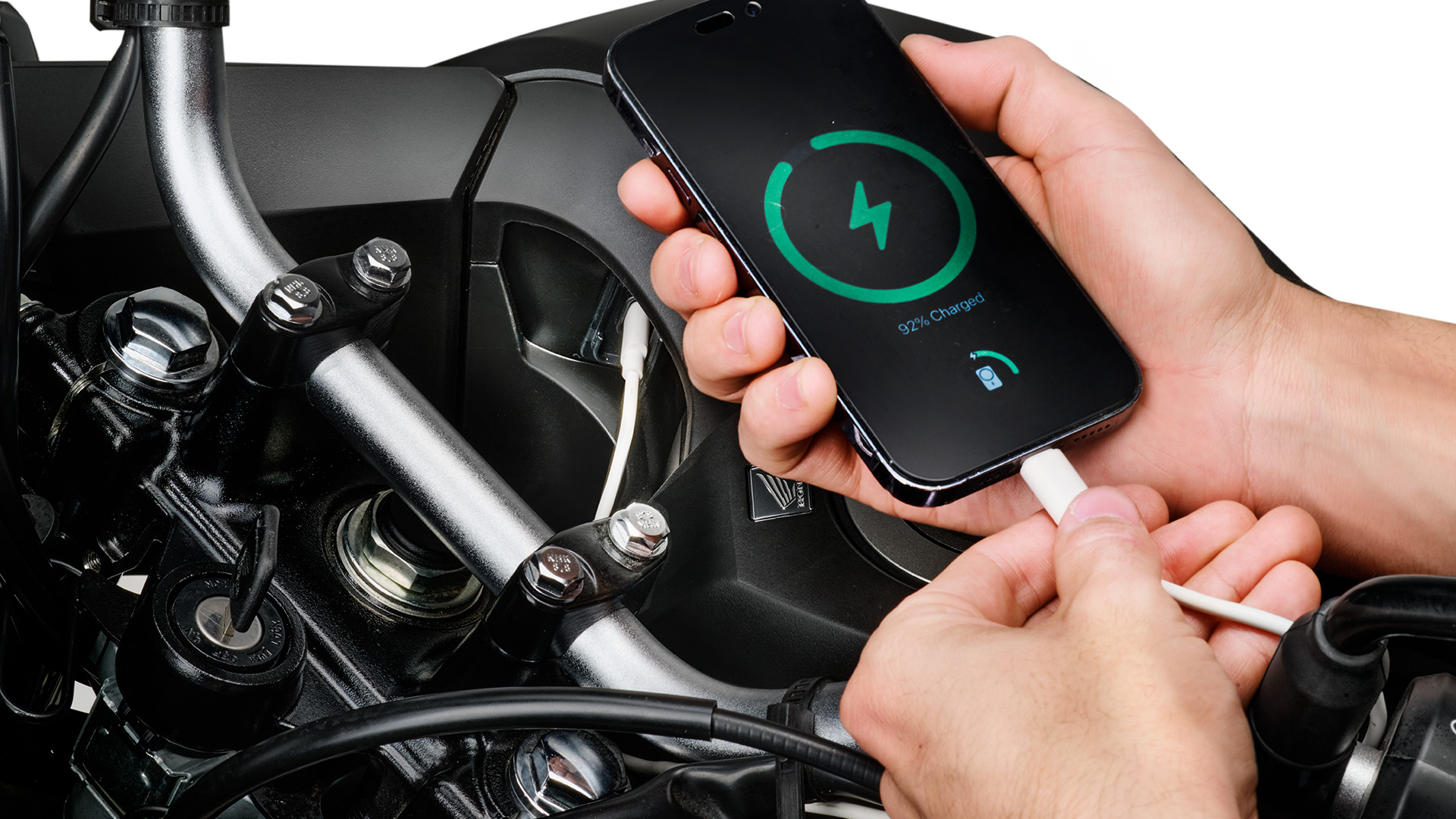 Leve a vida numa Honda e nunca fique sem bateria. A nova XRE 190 agora vem com entrada USB-C para que você esteja sempre conectado.