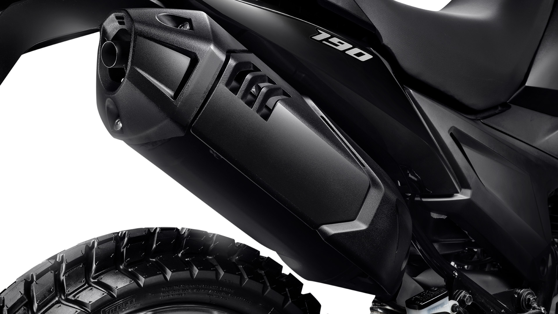 O protetor de escapamento da nova XRE 190 não só realça o visual, como também oferece mais proteção para que suas jornadas sejam seguras e cheias de estilo.